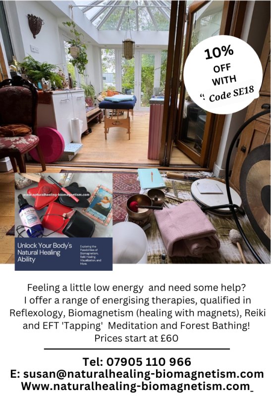 My treatments are a mix of Biomagnetism, Reiki Healing and you can expect plenty of advice on natural healing and nutrition. Each client is special and unique to me and no two sessions are identical.